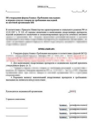 Приказ «Об утверждении формы бланка «Требование-накладная» и порядка отпуска товаров по требованию-накладной из аптечной организации» для больничной аптеки 300 руб