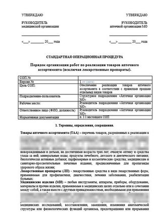 СОП «Порядок организации работ по реализации товаров аптечного ассортимента (исключая лекарственные препараты)» в больничной аптеке 700 руб