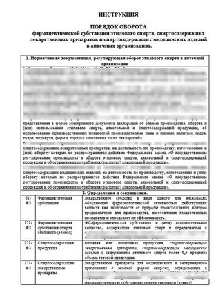 Инструкция «Порядок оборота фармацевтической субстанции этилового спирта, спиртосодержащих лекарственных препаратов и спиртосодержащих медицинских изделий» в больничной аптеке 700 руб