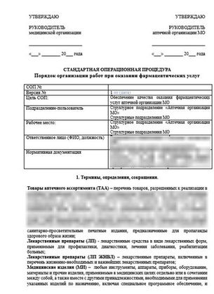 скидка 17% СОП «Порядок организации работ при оказании фармацевтических услуг» в больничной аптеке 1 250 руб 1 500 руб