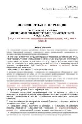 Должностная инструкция заместителя заведующего склада оптовой фармацевтической оцирганизаи