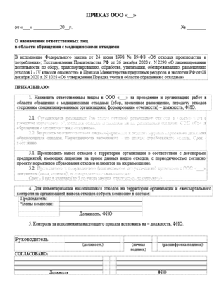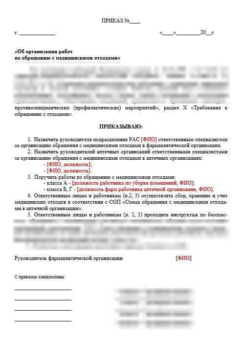 - Приказ «Об организации работы по обращению с медицинскими отходами»