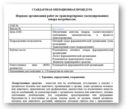 - взаимосвязь процесса перевозки со стандартной операционной процедурой, журналом и информационной системой.