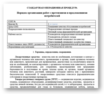 - СОП «Порядок организации работ при хранении, учете и (отпуске) реализации лекарственных препаратов, подлежащих предметно-количественному учету, в фармацевтической организации»;