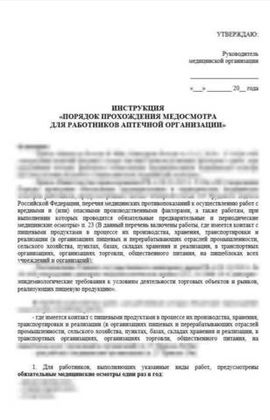 - Инструкция «Порядок прохождения медицинского осмотра для работников аптечной организации МО».