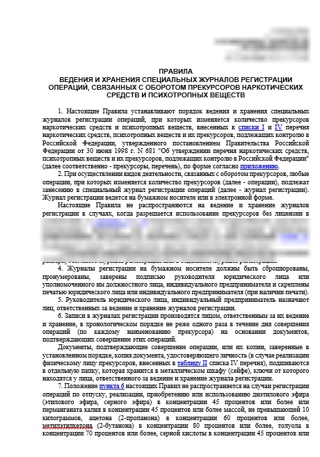 Работа больничной аптеки неразрывно связана с оборотом химических веществ, внесенных в Списки I и IV перечня наркотических средств. Перманганат калия для хирургии, кислоты для лабораторий, эфиры для анестезиологии — все это требует строгого предметно-количественного учета. Журнал регистрации операций с прекурсорами — главный документ, подтверждающий легальность расходования этих средств внутри стационара.
