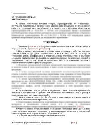 - руководство по качеству в аптеке или выписки из него обязательны к применению для всего персонала и подразделений компании, прямо или косвенно принимающих участие в работе розничной аптечной сети.